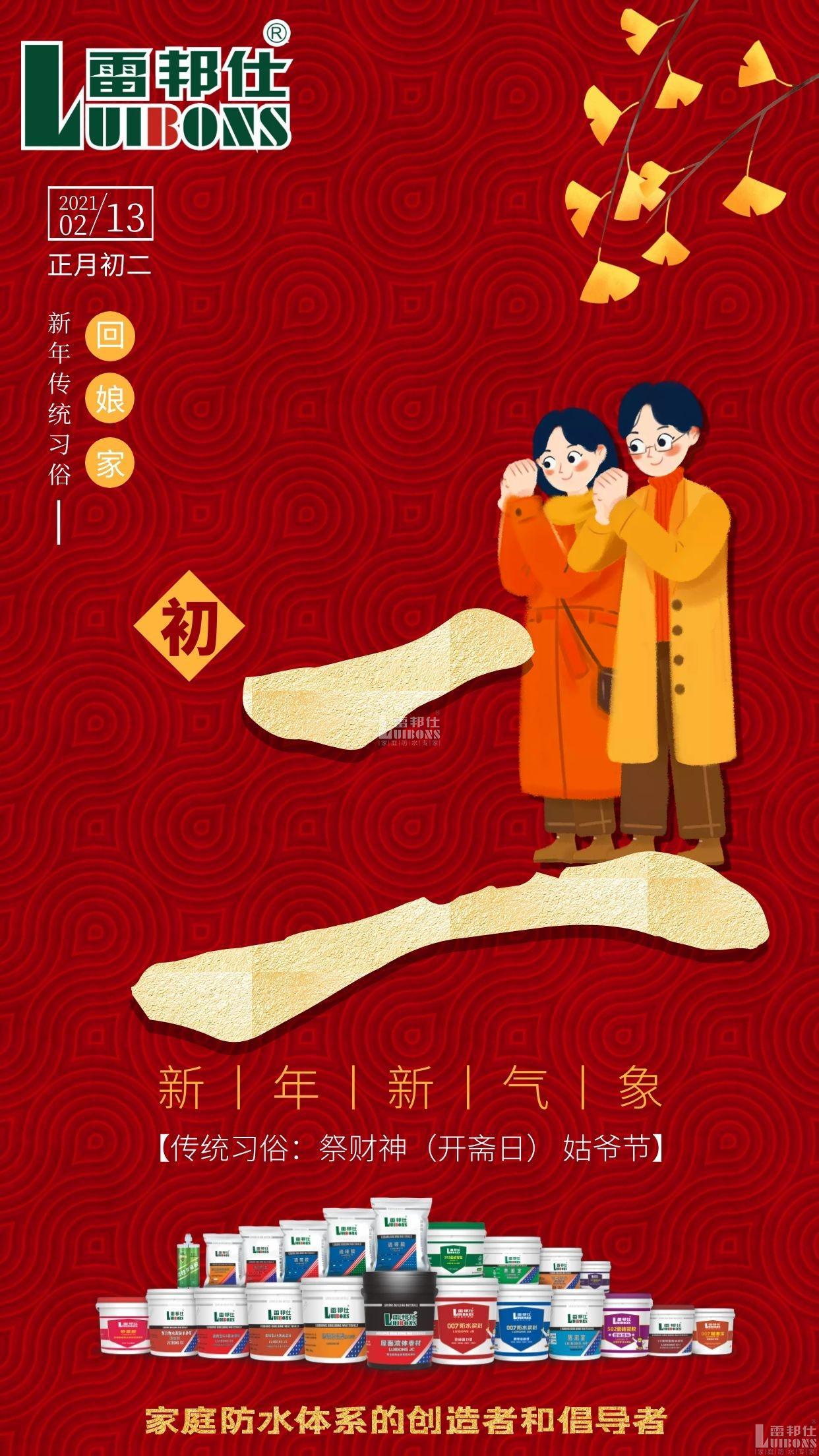 大年初二祝福到,雷邦仕防水愿你抱著平安,