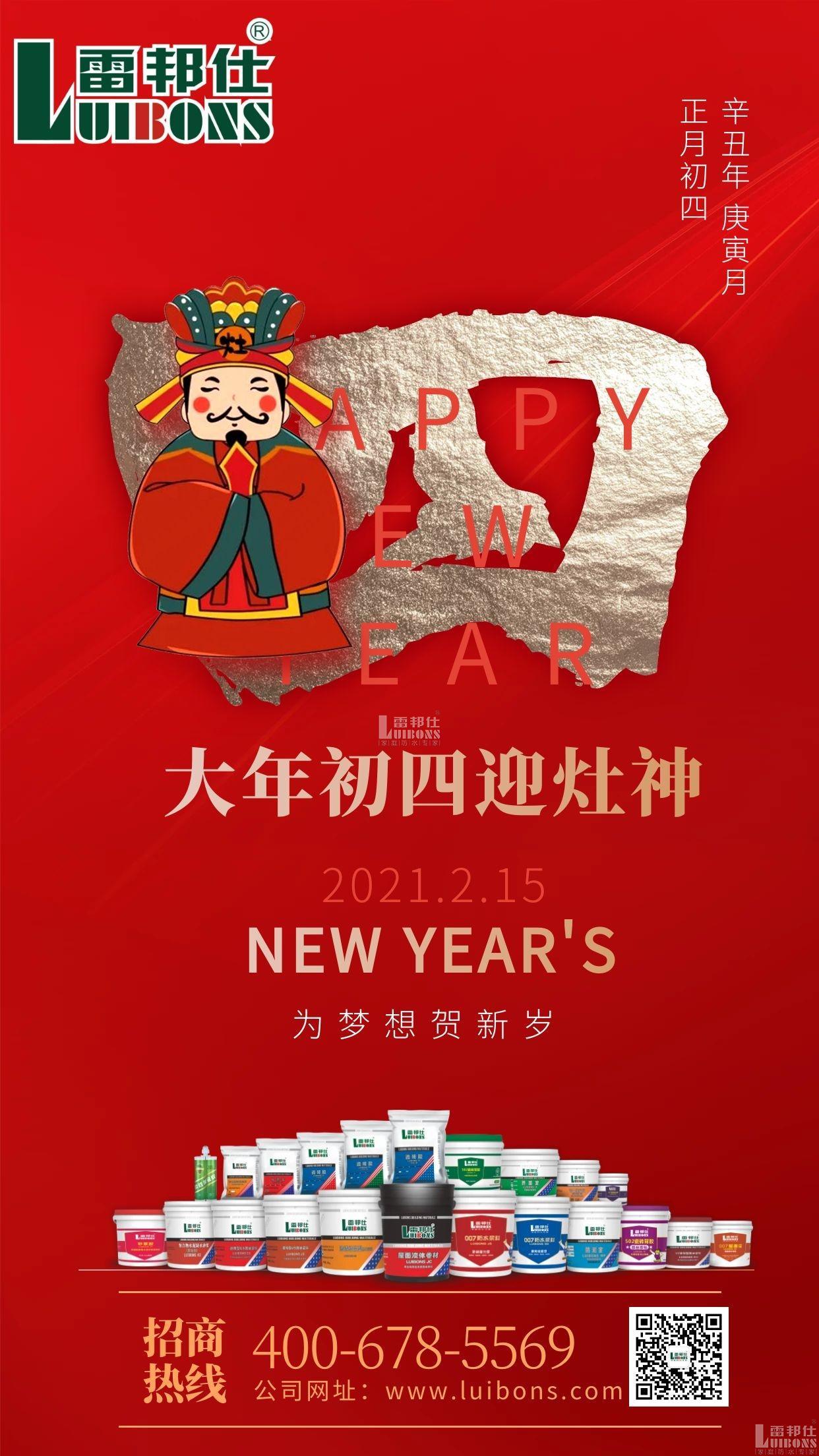 今天是正月初四,民間有“接灶王”的習俗。雷邦仕防水祝您在新的一年,三餐四季溫柔有趣,天天大吉大利!