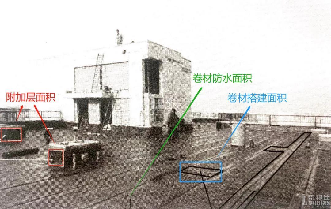 卷材防水層面積按照施工圖紙計算,或從工地現場實際測量所得,如下圖所示。